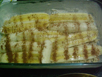 Em um refratário (ou qualquer forma) untada e enfarinhada, polvilhe um pouco da farofa, coloque algumas fatias das bananas por cima e polvilhe canela. Novamente coloque a farofa, depois a banana e a canela e vai fazendo as camadas até acabar tudo.